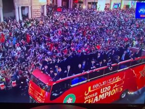A leur sortie du Palais Royal, les champions du monde U20 ont été accueillis en héros dans la capitale, où une foule nombreuse s’est rassemblée pour les acclamer le long du trajet Bab Essoufara-Avenue Mohammed V.