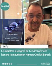 Le ministère espagnol de l’Environnement a rendu hommage, cette semaine, à l’expert environnemental et militant associatif mauritanien Hamdy Ould M’Bareck, en reconnaissance de ses contributions remarquables à la protection de l’environnement marin et de la biodiversité en Mauritanie.
