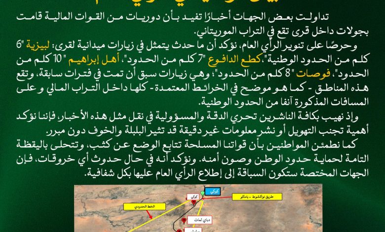 L’armée précise que les localités évoquées dans ces publications se situent entièrement en territoire malien. Carte à l’appui, elle a cité plusieurs villages concernés, en attestant qu’ils se trouvent à plusieurs kilomètres de la frontière mauritanienne. Selon les responsables militaires, ces vérifications confirment clairement qu’aucune violation des frontières n’a eu lieu, contrairement à ce qui est relayé en ligne.